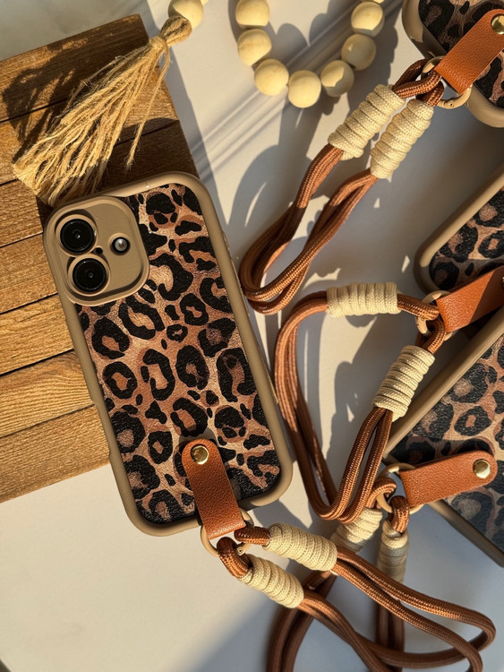 قاب پلنگی قهوه ای سالید با آویز آیفون سامسونگ شیائومی
