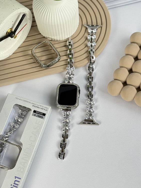 بند اپل واچ فلزی پاپیون کریستالی + گارد نگین دار