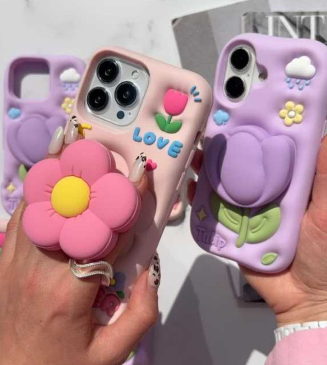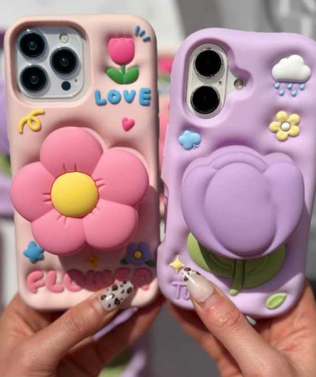 قاب گل پاپسوکتی آیفون با طرح لطیف گلدار و پاپسوکت ست و محکم.