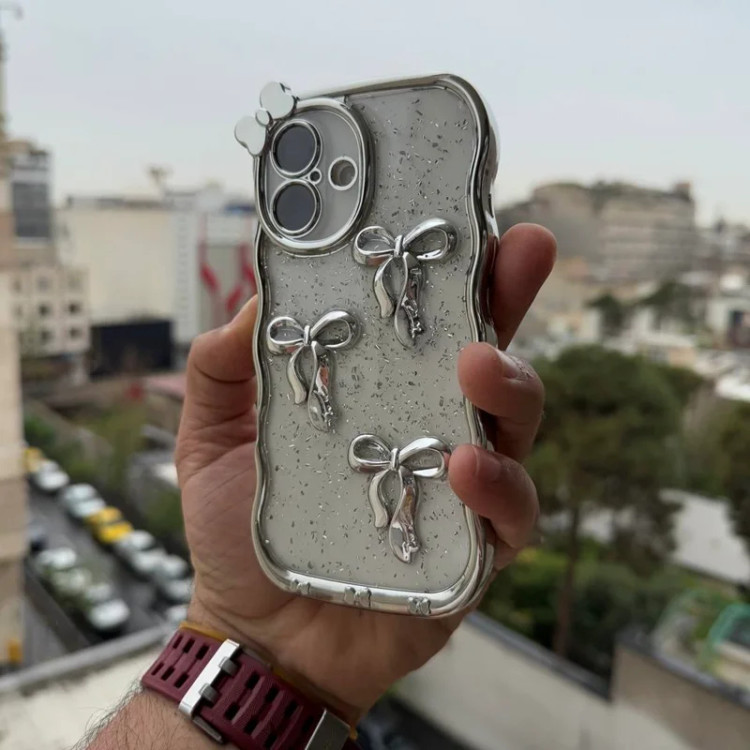 - طراحی شفاف با سه پاپیون نقرهای براق
