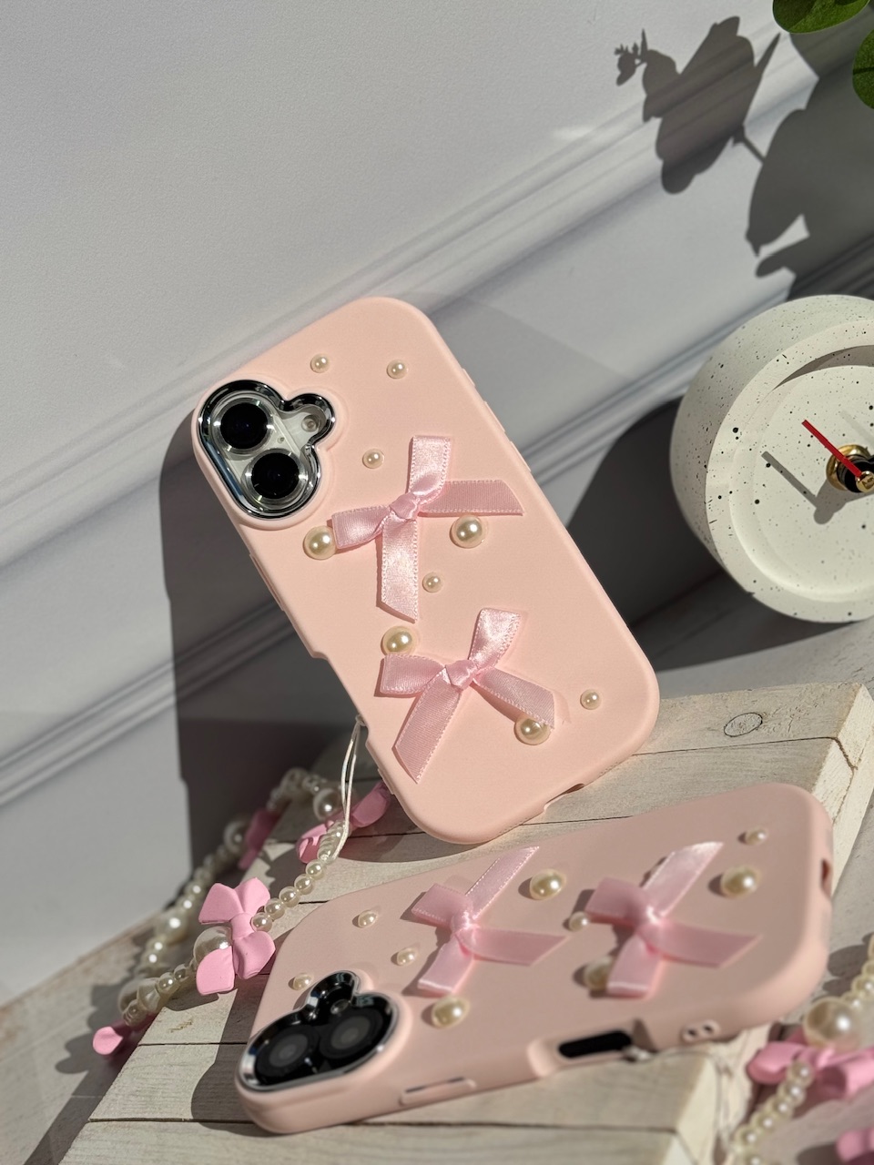 قاب پاپیون مروارید صورتی با آویز